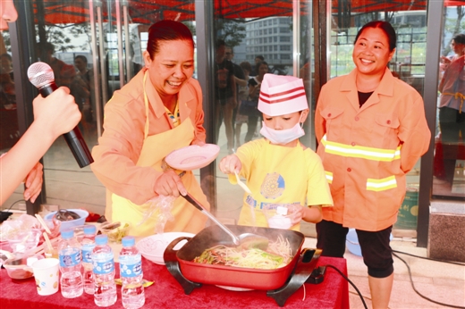 5月28日上午,南寧經(jīng)濟開發(fā)區(qū)開展“關愛農(nóng)民工 綠港小廚神”主題親子活動。轄區(qū)內的園林綠化工人、水電維修物業(yè)工人、保潔人員等300多名進城務工人員及其子女參加了本次活動。