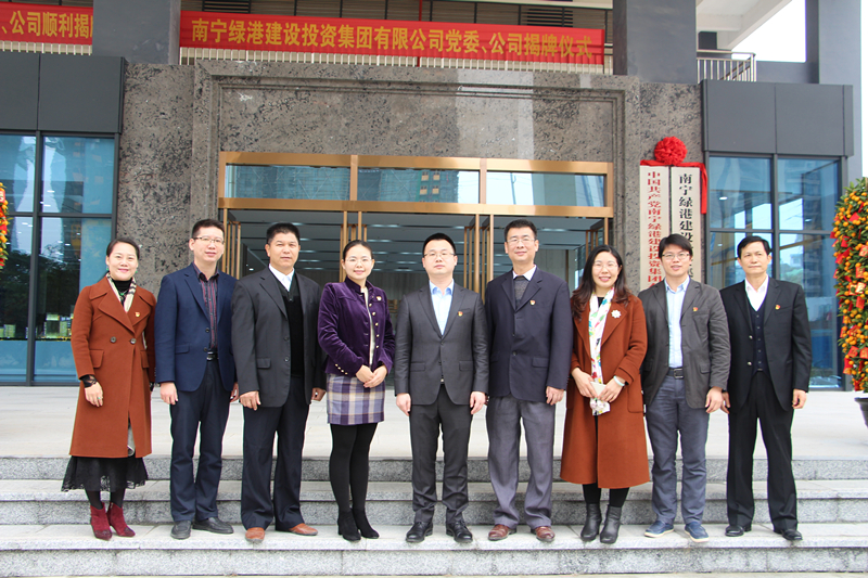 經開區(qū)黨工委書記、管委會主任何尚漢,經開區(qū)黨工委副書記覃傳財,綠港集團黨委書記、董事長、總經理龔國強,綠港集團副總經理陸羿冰共同為綠港集團黨委、公司揭牌