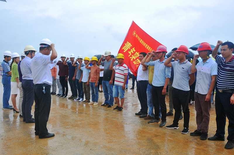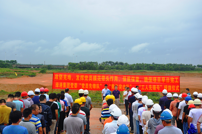 當(dāng)天,細(xì)雨蒙蒙,綠港集團(tuán)黨委書記、董事長(zhǎng)、總經(jīng)理龔國(guó)強(qiáng)在項(xiàng)目現(xiàn)場(chǎng)給參建黨員授予了“黨員先鋒隊(duì)”旗幟,給參建團(tuán)員青年授予了“青年突擊隊(duì)”旗幟,綠港集團(tuán)副總經(jīng)理、工會(huì)主席黃麗琴給吳圩空港經(jīng)濟(jì)區(qū)重點(diǎn)項(xiàng)目推進(jìn)組授予了“工人先鋒號(hào)”錦旗,激勵(lì)廣大黨員干部青年同志們要以強(qiáng)烈的政治責(zé)任感、立足本職崗位,充分發(fā)揚(yáng)不怕吃苦、勇于負(fù)重,敢打硬仗、能打硬仗的“綠港鐵軍”優(yōu)良傳統(tǒng),為吳圩空港經(jīng)濟(jì)區(qū)項(xiàng)目建設(shè)做貢獻(xiàn)。