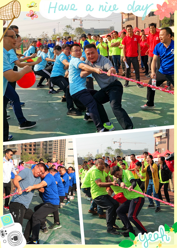 首先開(kāi)始的是拔河比賽,只聽(tīng)裁判員的一聲哨響,現(xiàn)場(chǎng)馬上進(jìn)入到緊張的比賽環(huán)節(jié)。廖勇副主任與集團(tuán)公司領(lǐng)導(dǎo)一道,一馬當(dāng)先打頭陣,對(duì)壘科巨公司隊(duì)。只見(jiàn)這邊運(yùn)動(dòng)員們個(gè)個(gè)咬緊牙關(guān)、目光如炬,臉憋得通紅、手拉得充血,比賽的戰(zhàn)況緊緊地牽動(dòng)著觀眾們的心,繩子一時(shí)往左一點(diǎn),一時(shí)往右一點(diǎn),在緊張的氛圍中大家聲嘶力竭地給運(yùn)動(dòng)員們加油鼓勵(lì),現(xiàn)場(chǎng)氣氛十分高漲!經(jīng)過(guò)幾輪的比拼,萬(wàn)方公司隊(duì)獲得拔河比賽項(xiàng)目冠軍、科巨公司隊(duì)獲得亞軍、榮鑫公司隊(duì)獲得季軍。