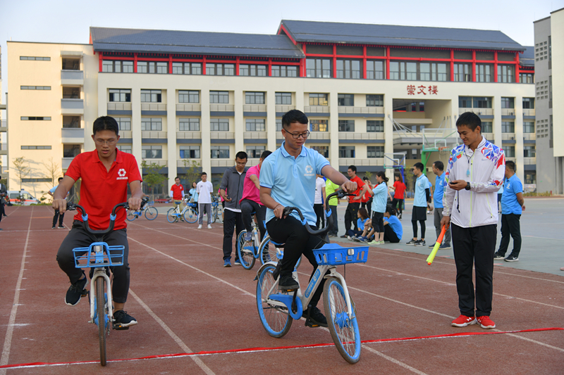 下午,雖然艷陽(yáng)高照,但是卻絲毫沒(méi)有影響參賽隊(duì)員們的熱情,賽場(chǎng)更是熱火朝天,加油聲此起彼伏,原來(lái),這是最受職工歡迎和參與率最高的比賽環(huán)節(jié)——趣味類運(yùn)動(dòng)競(jìng)技。今年的趣味競(jìng)技設(shè)置了龜兔賽跑、快樂(lè)運(yùn)球、同舟共濟(jì)、滾鐵環(huán)、激情袋鼠、定點(diǎn)投籃和慢騎自行車等項(xiàng)目,既有團(tuán)體比賽,又有個(gè)人積分賽,大家結(jié)合自身的實(shí)際和特長(zhǎng)選報(bào)項(xiàng)目,全身心投入比賽。為了取得好成績(jī),午飯后,很多運(yùn)動(dòng)員放棄了休息,都在操場(chǎng)上反復(fù)練習(xí),不斷總結(jié)經(jīng)驗(yàn)。