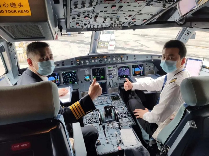醫(yī)療隊員和飛機乘務人員合影留念。